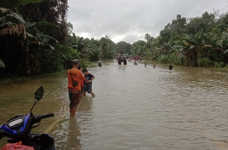 Banjir Genangi Akses Jalan Utama di Beduai