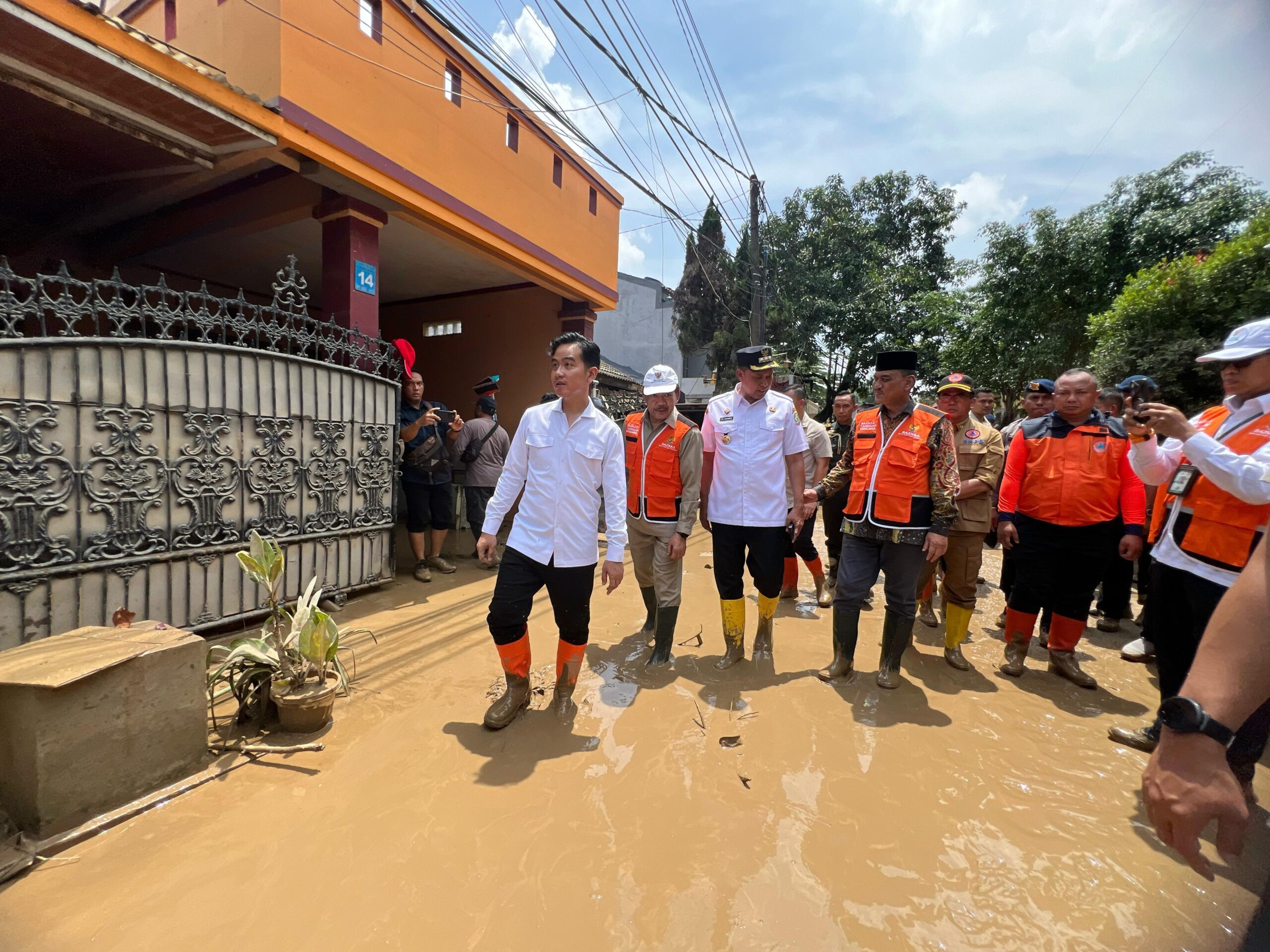FAKTA GROUP – Wakil Presiden (Wapres) Gibran Rakabuming mengunjungi tempat pengungsian yang berlokasi di Kantor Logistik dan Peralatan BNPB Kota Bekasi dan meninjau lokasi banjir di Perum Pondok Gede Permai (PGP), Jatirasa, Jatiasih, Bekasi, Rabu (05/03/2025). Langkah ini merupakan tindak lanjut arahan Presiden Prabowo Subianto dalam Rapat Terbatas di Istana Kepresidenan Jakarta, Selasa, 4 Maret 2025, mengenai tanggap darurat banjir.