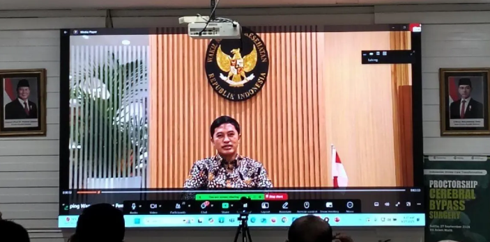 Wakil Menteri Kesehatan Dante Saksnno membuka kegiatan Proctoring Bypass Cerebral Surgery di Rumah Sakit Adam Malik secara virtual. (Dok. Ist)